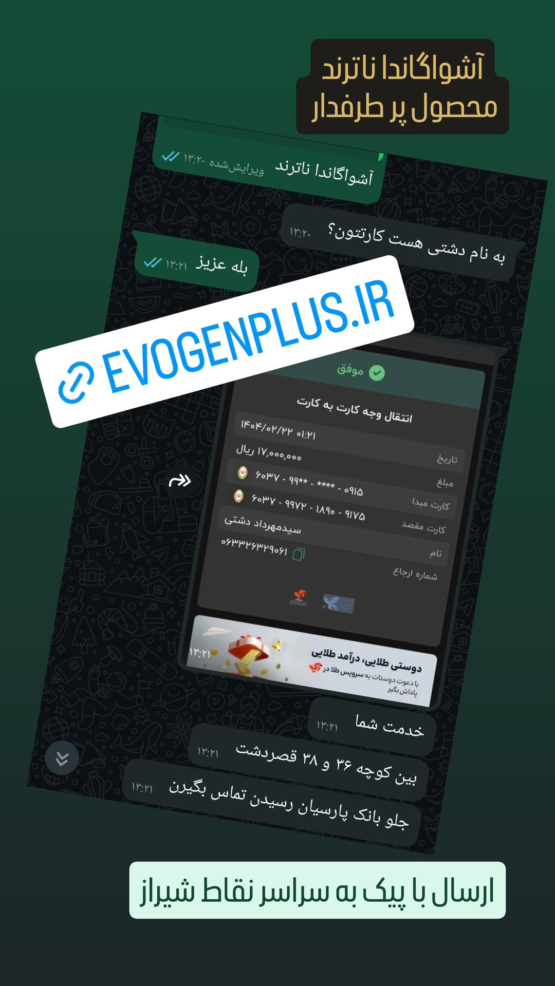 تمام محصولات موجود و در انبار ایوژن پلاس آماده ارسال بدون وقفه زمانی هستند
