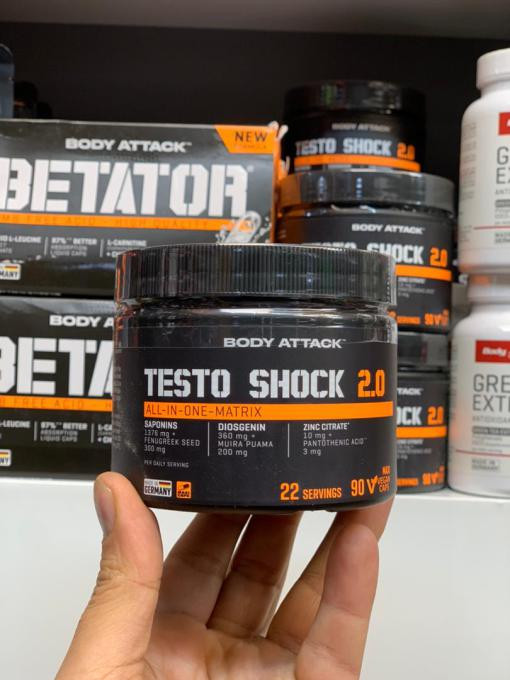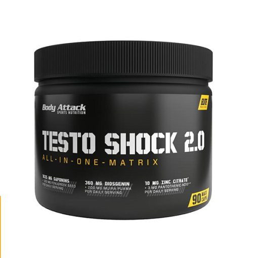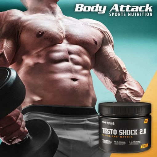 تستو شوک تست بوستر بادی اتک Body Attack Testo Shock 2.0 یکی از مکمل های غذایی است که به افزایش سطح تستوسترون در بدن کمک می کند. به عنوان فردی که سخت تمرین می کند و مدام محدودیت های خود را می شکند حتما می دانید که سطح تستوسترون چقدر مهم است. رشد عضلانی و افزایش عملکرد از مزایای افزایش تستوسترون است.