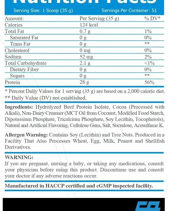 هر سروینگ از پروتئین بیف ایزوله اوربیلد، ۲۸ گرم پروتئین خالص با تنها ۲ گرم کربوهیدرات فراهم میکند و از نظر غلظت پروتئین، ۴۰۰٪ غلیظتر از استیک گوشت گاو است. این محصول بدون فیلر، بدون لاکتوز و بدون کلسترول تولید شده و برای افرادی که به لاکتوز حساس هستند یا رژیمهای خاص دارند، کاملاً مناسب است.
