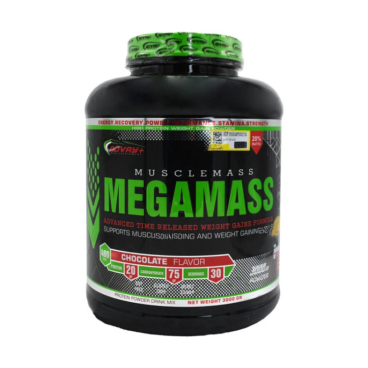 مگا مس ادوای 3000 گرمی Megamass Advay 3000g، برای کودکان، نوجوانان و بزرگسالانی که قصد افزایش وزن دارند بسیار مناسب است. مگا مس ادوای مجموعهای فوقالعاده از پروتئینها، ویتامینها و اسیدهای آمینه و آنزیمها است. همچنین کلسیم و ویتامینهای طبیعی شیر از دیگر ترکیبات موثر مگا مس ادوای محسوب میشوند. مگا مس ادوای از 4 پروتئین شیر، سویا، آلبومین، وی و کربوهیدراتهای ساده و پیچیده نیز برخوردار است. تمامی این ویژگیها باعث شده که این فرآورده جهت افزایش وزن، حجم و بازسازی عضلات افراد لاغر بسیار توصیه شود. مگا مس از برند معتبر ادوای در تمرینات بارگیری گلیکوژنی موجب افزایش قدرت و بهبود کارایی بدن خواهد شد. همچنین نه تنها از تحلیل عضلانی جلوگیری مینماید بلکه باعث افزایش حجم عضلات می شود.