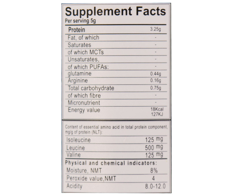 نوع محصول آمینو اسید وزن 450 گرم شرکت سازنده نوین کاران میلان نو کشور سازنده بسته بندی ایران