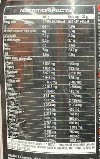 برای طعم شکلات و کاکائو: کنسانتره پروتئین وی (حاوی لسیتین آفتابگردان و کلسیم فسفات عامل ضد انقباض)، تقویت کننده طعم گلیسین، کاکائو، اینولین، شیر کامل خشک، غلیظ کننده صمغ زانتان، شیرین کننده های آسه سولفام کا و سوکرالوز، سدیم کلرید دی کیک، آنتی-سیلیکوم