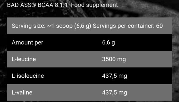 مشخصات محصول BAD ASS® BCAA 8:1:1 400 G