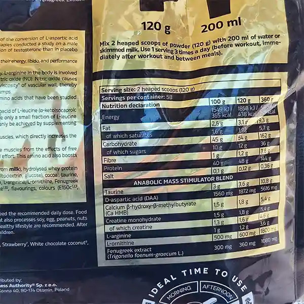 گینر آنابولیک مس 7 کیلویی کوین لورون محصولی بسیار با کیفیت از سری معتبر برند کوین لورون میباشد. مکمل مس گینر انابولیک Kevin Levrone حاوی مکمل پروتئین و کربوهیدرات غنی شده با کراتین منوهیدرات، آرژنین، اورنیتین، HMB و ماتریس تقویتکننده تستوسترون ( DAA و عصاره ی Kozieradka ) میباشد و برای بزرگسالانی با فعالیت ورزشی بالا مناسب است. مس و گینر 7 شامل ترکیبی از چهار منبع پروتئینی مختلف است که از جمله آنها میتوان به پروتئین وی کنسانتره، پروتئین وی ایزوله، پروتئین وی هیدرولیزه و کازئین هیدرولیزه اشاره کرد. پروتئین موجود در Kevin Levrone Anabolic Mass به رشد توده عضلانی کمک میکند.
