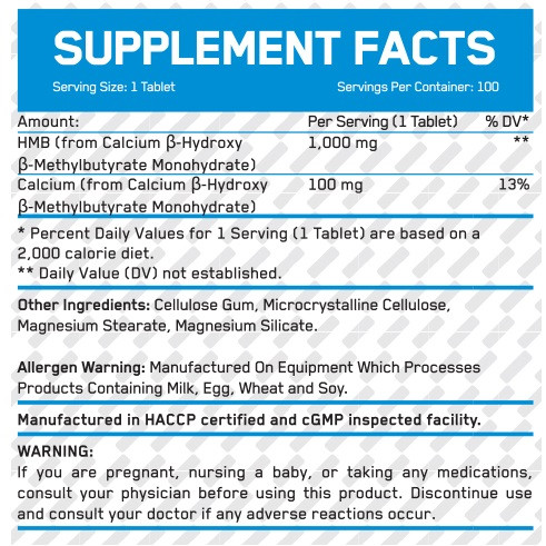 ترکیبات: کلسیم (از کلسیم ب-هیدروکسی ب- متیل بوتیرات مونوهیدرات)، HMB (کلسیم ب-هیدروکسی ب- متیل بوتیرات مونوهیدرات)