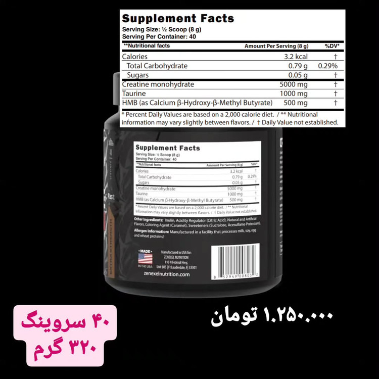 کراتین زنیکسل zenexel کراتین مونوهیدرات غنی شده با تائورین و