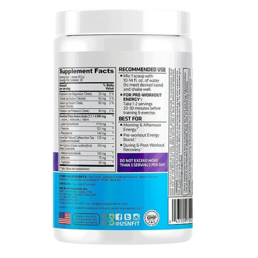 آمینو استیم usn یک پودر حاوی آمینو اسیدهای ضروری است که به همراه کافئین طبیعی آن و آب نارگیل، باعث ایجاد انرژی، آبرسانی و الکترولیتهایی میشود که این محصول را برای استفاده قبل از تمرین به مناسبترین گزینه بدل میکند و در طول تمرین باعث افزایش مقاومت و همینطور جلوگیری از دهیدراته شدن بدن میشود.
