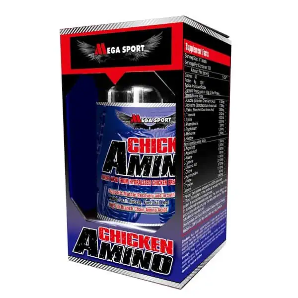 پروتئین مرغ چیکن آمینو مگا اسپورت Mega sport CHICKEN AMINO یکی از مکمل های ورزشی با کیفیت بالا است که می توانید در برنامه رژیم غذایی خود قرار دهید. پروتئین مرغ در مقایسه با بسیاری از غذاهای اصلی دیگر پروتئینی با کیفیت است. پروتئین موجود در مرغ حاوی تمام آمینو اسیدهای ضروری به نسبت صحیح مورد نیاز بدن برای رشد بهینه بافت بدون چربی است.