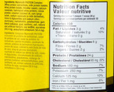 - هر وعده ( 1 پیمانه / 35.5 گرم ) در طعم شکلاتی دارای 130 کالری ، 2 گرم چربی ،