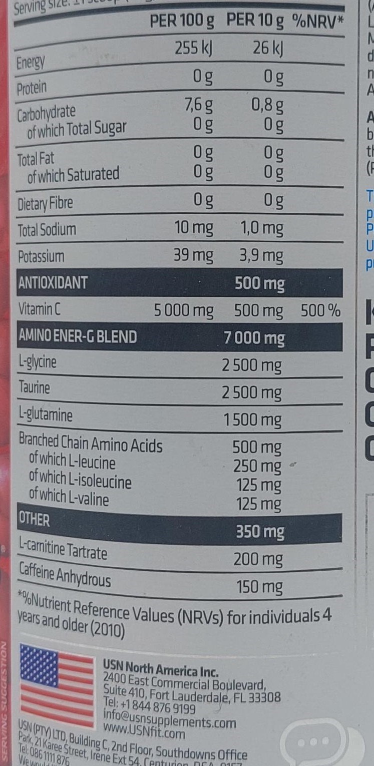 مشخصات محصول USN Energizing Amino Ener-G