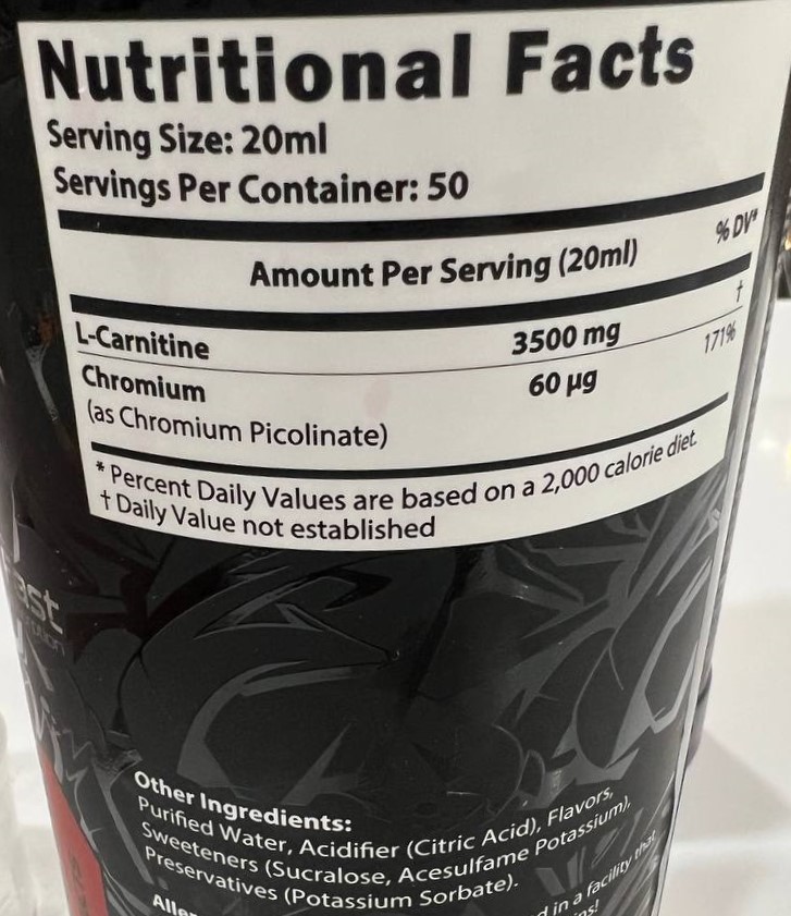 • ال-کارنیتین: ۳۵۰۰ میلیگرم