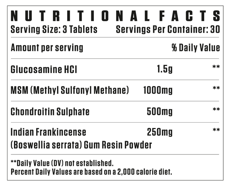۱۵۰۰ میلیگرم گلوکزامین HCL: برای تشکیل و ترمیم غضروف و کاهش ناراحتی مفاصل