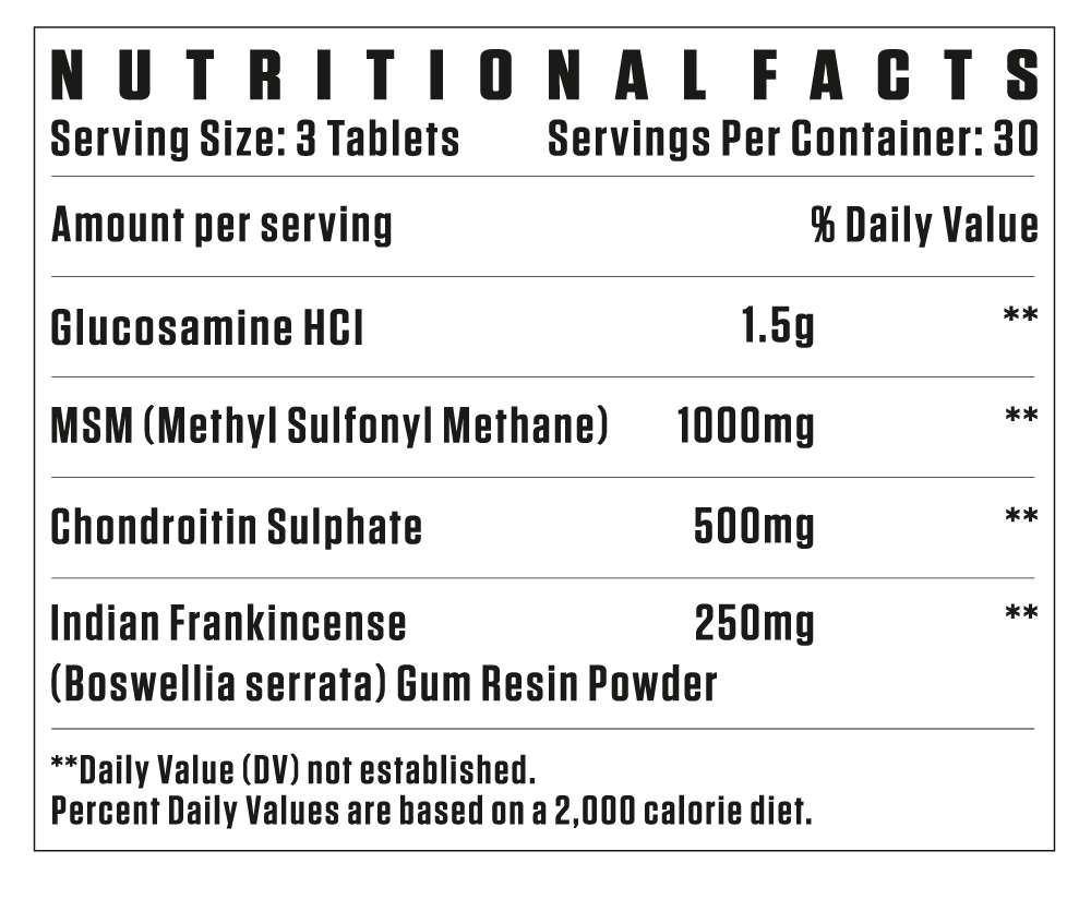 ۱۵۰۰ میلیگرم گلوکزامین HCL: برای تشکیل و ترمیم غضروف و کاهش ناراحتی مفاصل