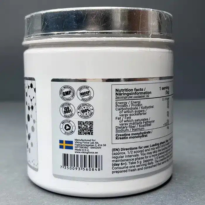 کراتین مونوهیدرات وایکینگ فورس، یک مکمل پایه و حرفهای برای بدنسازان و ورزشکاران قدرتی است که با 100% کراتین خالص تولید میشود. این محصول از برند Viking Force سوئدی، تحت استانداردهای GMP اروپا ساخته شده و به دلیل خلوص بالا و بدون افزودنی، طعم یا نگهدارنده، در بین ورزشکاران حرفهای محبوبیت ویژهای دارد.