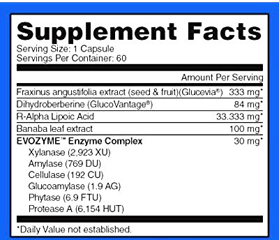 Dihydroberberine (GlucoVantage) : یکی دیگر از اولین ها در صنعت بدنسازی عصاره قوی بربرین است. این متابولیت بربرین در واقع تا 6 برابر بیشتر از خود بربرین فراهمی زیستی دارد. بربرین در بسیاری از محصولات سنتی GDA یافت می شود اما Evogen با استفاده از یک متابولیت قویتر برای بهبود حساسیت به انسولین و تقسیمبندی مواد مغذی با دوز بسیار کمتر، یک سر و گردن بالاتر است.