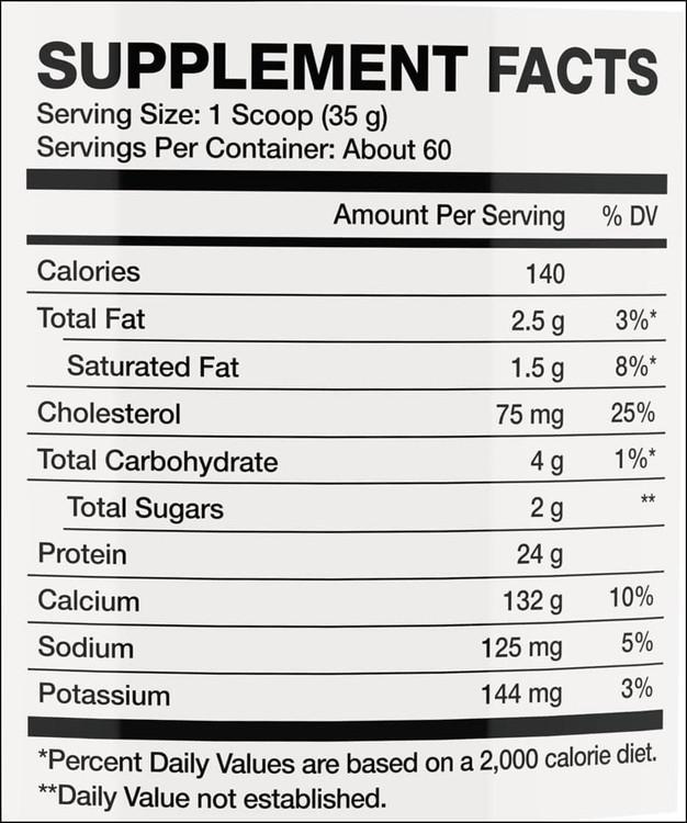 در این محصول برای تشکیل 8 گرم پروتئین واقعی، 9.3 گرم از پروتئین وی ایزوله و حدود 10.64 گرم از کنستانتره پروتئین وی و حدود 9.58 گرم از کازئین میسلار به کار رفته است.
